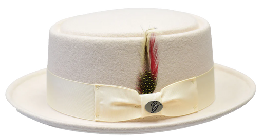 View full detailsComplete any look in this stylish, classic Pork Pie by Bently Headwear. This semi-crushable hat comes unlined. Finished off with a feather and "B" ...