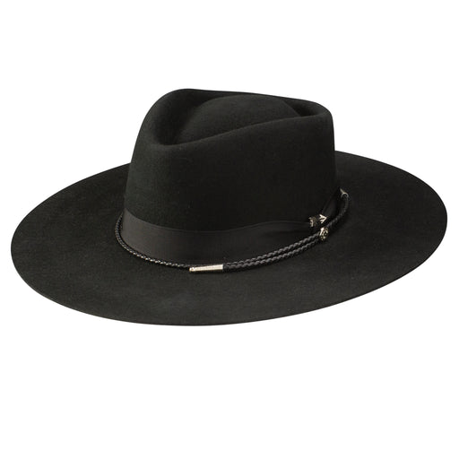 View full detailsA modern twist on a classic style the Dylan Hat is a real show stopper. Embellished with black braided cord accented with silver tassels and finis...