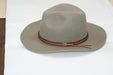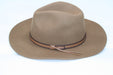 The Arizona Outback is a poly blend Felt outdoor shape hat with a 3 1/4" brim with narrow band. Adjustable to fit multiple sizes. This is a flop hat, the brim cannot be shaped and may be wavy as appears in the pictures.