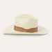 A statement-making straw fashion hat, the Enigma combines our legendary craftsmanship with a bold silhouette and eye-catching details. Handwoven one strand at a time in the U.S.A. from high-quality 100% shantung straw, it has a 4 ½” pinch front crown with a 4” brim, and it’s fitted with a medium grosgrain band and 2-ply cord wrap with gold-tone concho. Lightweight and durable, it has a firm finish to retain its shape and a genuine leather sweatband for a comfortable, time-tested fit, making it an ideal, stylish companion for any warm-weather occasion.
